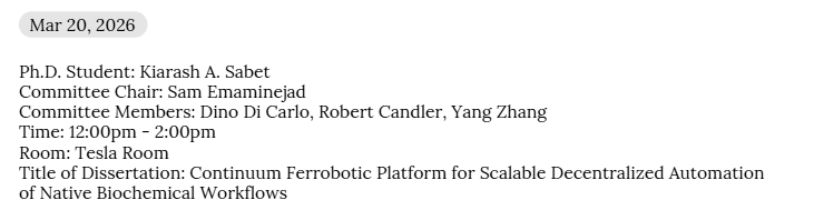 To be included in future newsletters, please send the latest news, awards, publications and any upcoming PhD oral defenses to the Chair’s assistant, Winda Mak, at wmak@seas.ucla.edu. Please include “newsletter submission” in the subject line. The ECE newsletters will be sent bimonthly on the first and third Mondays of the month. Please ensure all submissions are received by the Wednesday before distribution to be included in the newsletter.